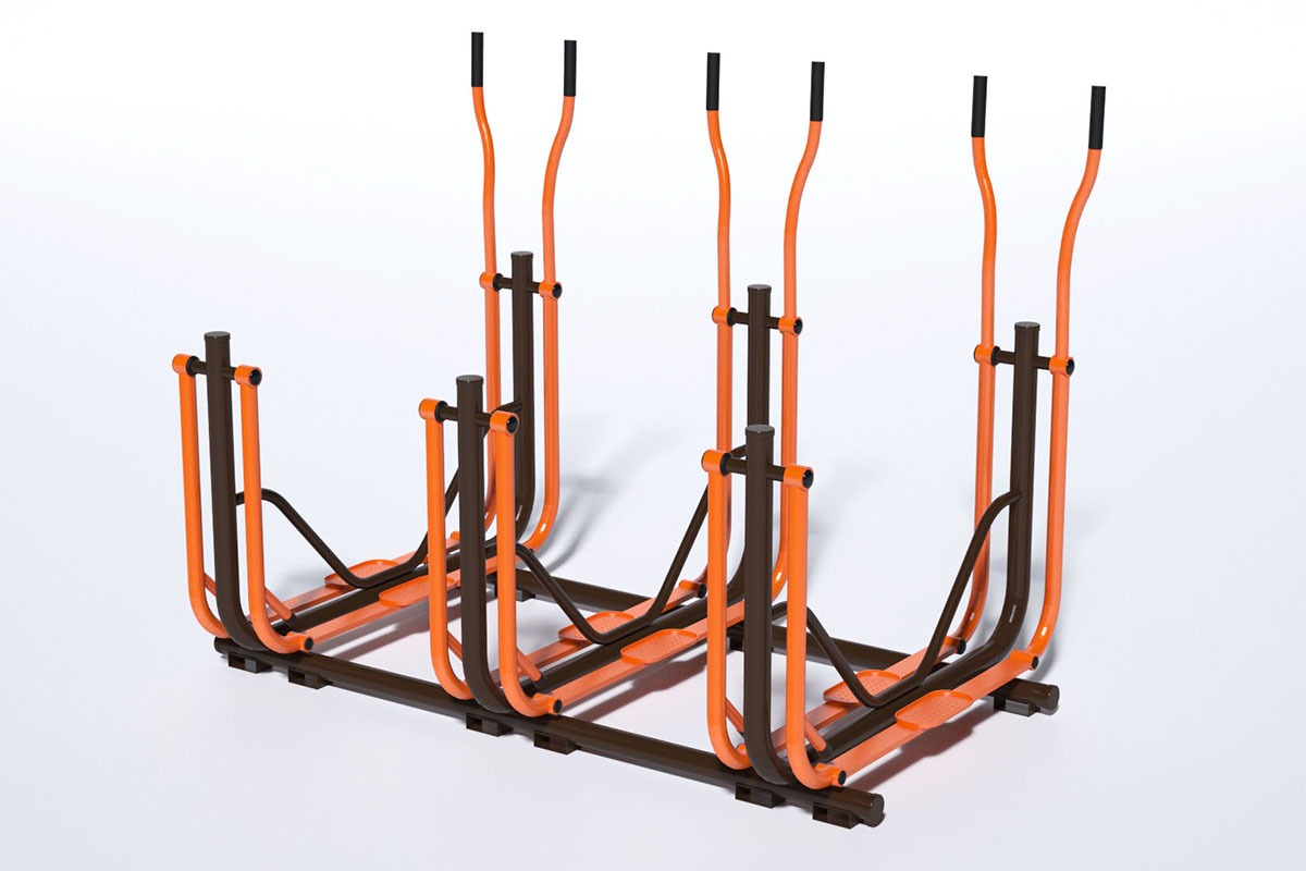 ACADEMIA AR LIVRE (AAL) OU ACADEMIA TERCEIRA IDADE (ATI)O aparelho ESQUI TRIPLO é parte do conjunto de academia ar livre (AAL) e/ou academia terceira idade (ATI), fabricado pela Goloni Mobiliário Urbano, permite a melhora da capacidade cardiorrespiratória, cardiovascular e resistência muscular.
